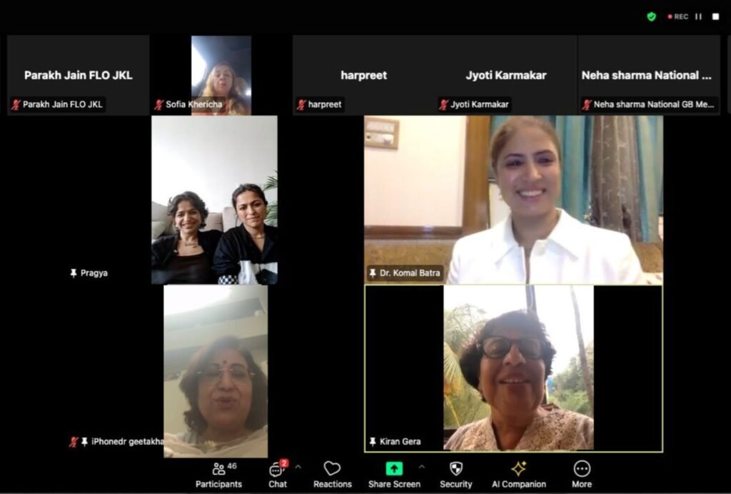 इस वेबिनार में फ्लो उत्तराखंड की फाउंडिंग प्रेसिडेंट वासवी भरतराम, पास्ट प्रेसिडेंट डॉ. कुसुम अंसल, नेशनल गवर्निंग बॉडी मेंबर्स – रितु चब्बारिया, शालिनी बेरीवाल, डॉ. नेहा शर्मा; पास्ट चेयरपर्सन्स किरण भट्ट व चारु चौहान; एवं कार्यकारिणी सदस्य – त्रिप्ती बहल, स्मृति बत्ता, मनीत, हरप्रीत, निशा – सहित फ़िक्की फ्लो की पैन इंडिया मेंबर्स, हरज़िंदगी.कॉम व क्वर्कस्मिथ की टीम उपस्थित रहीं।