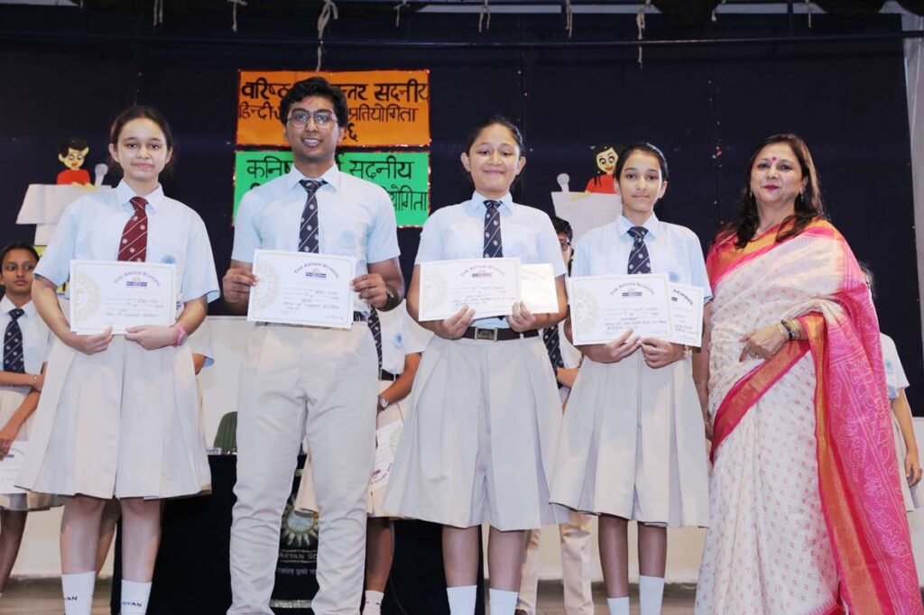 देहरादून: द आर्यन स्कूल में आज मिडिल स्कूल छात्रों के लिए इंटर हाउस हिन्दी वाद-विवाद प्रतियोगिता और सीनियर स्कूल छात्रों के लिए आशुभाषण प्रतियोगिता का आयोजन किया गया। प्रतियोगिताओं के विषय थे – ‘क्या अंकों की तुलना में समझ अधिक महत्वपूर्ण है?’ और ‘क्या कृत्रिम बुद्धिमत्ता मानव बुद्धिमत्ता की जगह ले रही है?’
